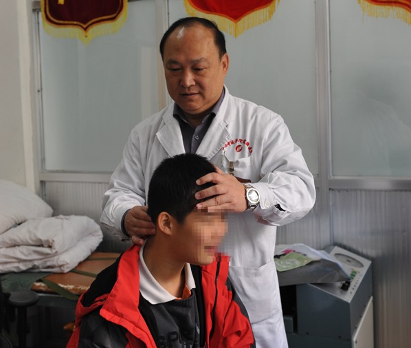 初一的小洋最近在老师和同学眼里变成了“顽皮小孩”,上课的时候总是做鬼脸、挤眉弄眼、耸肩等小动作,后来就更厉害了,上课的时候经常“手舞足蹈”。这样的现象持续了两个多月,家长以为小孩有“多动症”,带他到瑞康医院就诊,来到正骨推拿科找安连生主任,追问病史,家长介绍,两个月前有头颈部外伤史,之后就开始有全身的抽搐,头晕等症状,近期加重,就在就诊期间,小洋全身抽动均2分钟左右一次,安主任详细询问了病史,细致的进行了身体检查,“抽动时无意识丧失,颈部活动还可以,右侧颈部肌肉痉挛,小洋的X片显示:颈曲变直,颈椎3、4、5呈双突征,颈椎4、5钩椎关节左宽右窄,环齿间隙左窄右宽,诊断是:环枢关节半脱位。“患者的诊断是清楚的,环枢关节结构不稳,对脊髓造成影响,导致抽搐,目前用手法进行治疗”。经过一天的治疗,17日来诊的时候,家长说情况有了很大的好转,“现在抽动症状明显减少了。24小时抽动了3次”。