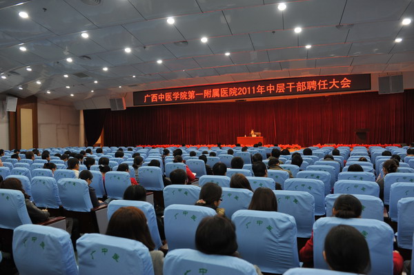 2011年3月7日下午4时,一附院在住院综合楼5楼多功能会议厅召开医院2011年中层干部聘任大会。