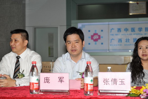 自治区卫生厅中医药管理局庞军局长(中)出席捐赠仪式并发表讲话