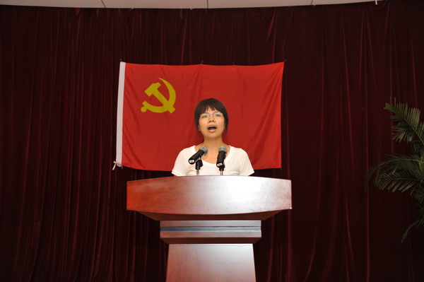 宣誓完毕后,内科党总支第十三党支部的黄永、教学党总支梁丽燕两位同志代表新党员发言。他们表示在党的90华诞,成为一名党员,对党宣誓,将是自己一生中最难忘的日子。在党的培养和同志们的帮助下光荣的加入了中国共产党,是他们人生新的起点,他们将遵守誓言,认真履行党员义务,在工作、学习中做好先锋模范带头作用,为党的事业奋斗终身。