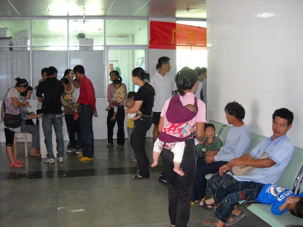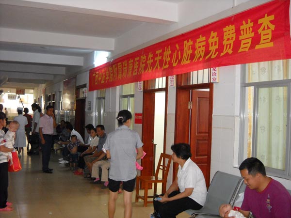 2011年8月22-27日,由瑞康医院心胸外科吴文森主任、心血管内科何劲松主任、心血管二病区黄金龙主治医师、超声科唐昂主治医师等组成儿童先心病普查专家队伍在医疗服务部张丽群副主任带队前往贺州市救助点开展普查工作。本次参加普查人数共计200余人,查出先心患儿需手术53人。