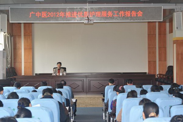 2010年,卫生部面向全国启动“优质护理服务示范过程”活动,并将优质护理服务工作纳入医药卫生体制改革、等级医院评审标准、优质医院建设、重点专科建设项目中,作为一票否决权的重点核心指标,护理工作得到前所未有的重视。为深化优质护理服务概念,进一步推进一附院优质护理服务工作,2012年2月14日下午,一附院特别邀请自治区卫生厅医政处调研员张益民老师在第一会议室作推进优质护理服务工作报告,一附院黄贵华院长、李敏智书记、李成林副书记、韦艾凌副院长、卢健棋副院长、吴西西副院长出席报告会,全院中层领导干部参加了报告会。
