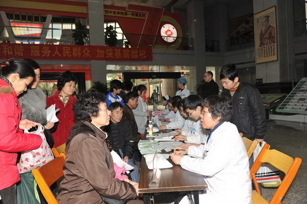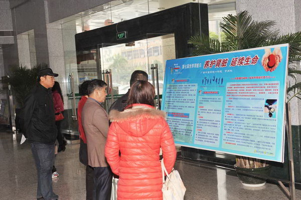 每年3月是全区教育系统学雷锋活动月,根据中央和自治区的部署要求,一附院党委号召全院党员干部职工开展以“学雷锋志愿服务”为主题的志愿服务活动。一附院肾病、风湿病科于201238日第七个“世界肾脏病日”举行了“关注肾脏健康”大型宣教义诊活动,为广大市民提供了免费健康咨询、体检、诊治及慢性肾衰中医饮食指导等服务。通过义诊、板报宣传等多种形式,让市民了解今年 “世界肾脏病日”的主题是 “捐献肾脏,延续生命”及肾脏健康的相关知识。
