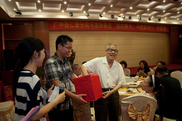 为了使与会领导、嘉宾友情欢聚的同时能收获健康,仁爱分院还组织了中医内科闵范忠教授、陈廷禧教授、黄家诏教授、林才志教授,妇科陈慧珍教授、韦明芳副教授,男科史宏教授,针灸科王登旗教授、何振威教授,骨伤科周学龙教授等10名专家亲临现场,进行义诊和健康咨询,与会嘉宾纷纷利用了这个难得的机会,请专家们诊病和咨询。林才志副教授和周学龙教授还分别作了题为《时辰与养生》和《颈椎病的特殊症状及预防》的健康讲座,向大家传授中医“治未病”回归自然、返璞归真的生活理念,倡导绿色健康生活,深受与会嘉宾的欢迎与好评,希望今后仁爱分院专家多到周边单位、社区做健康教育讲座,传播更多的医学保健知识和就诊信息,达到和谐双赢发展之目的。
