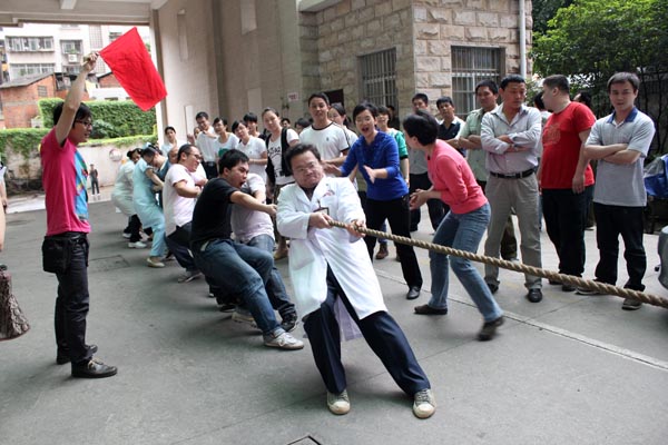 在“五一”国际劳动节即将到来之际,为了丰富医院职工的业余文体生活,增进友谊,增强职工的集体荣誉感,增强瑞康人的凝聚力,塑造职工顽强拼搏之精神,瑞康医院于2012年4月20日在急诊通道举办职工拔河比赛。