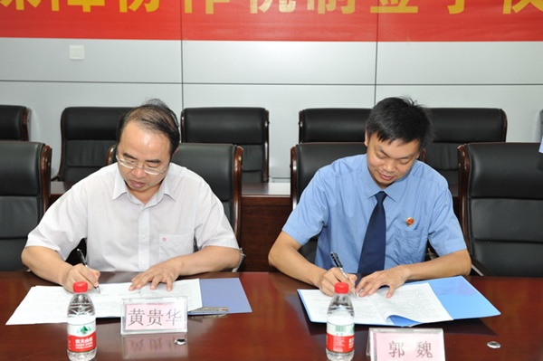 黄贵华院长、郭魏检察长在协议上签字