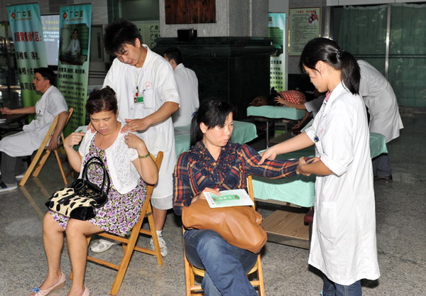 此次义诊活动主要分为颈椎病和腰间盘突出症两大专场。活动现场,医务人员为广大市民义务诊查、发放资料,做健康咨询,提供免费专业的推拿,对前来咨询的市民讲解颈椎病、腰椎病对我国居民健康的影响及人们在日常生活习惯中存在的误区,并对颈椎、腰椎的健康及预防保健知识进行科普宣传。专家们精湛的诊疗技术及深入浅出的讲解,深的广大市民的青睐,众多市民纷纷簇拥在推拿专家身旁咨询请教。此次义诊活动,共发放宣传资料800份,前来就诊咨询人员近600人,提高了广大市民对颈椎、腰椎健康的认识及预防保健能力和水平。