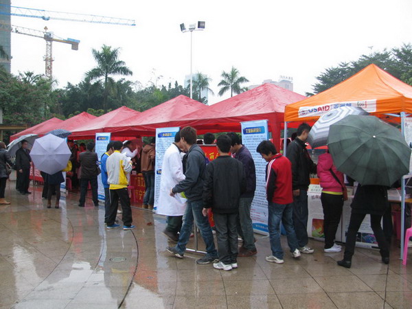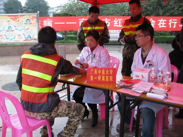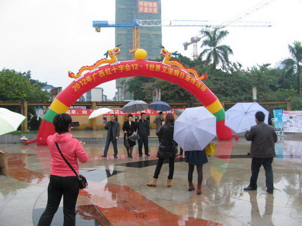 2012年12月1日是第25个世界艾滋病日,当天上午,由自治区红十字会主办的艾滋病防治宣传活动在南宁市友爱广场展开,一附院健康教育宣传员冯英华、皮肤科医生王艺等医务人员参加了此次宣传活动。