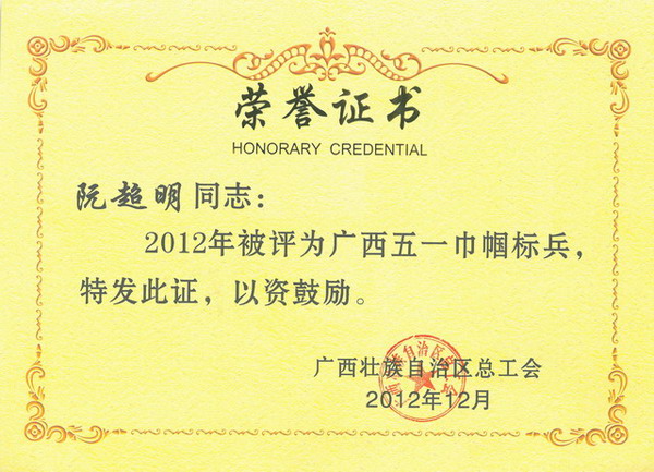 阮超明荣获全区女职工岗位创新大赛优秀奖