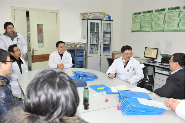 7日上午,高月求教授作为广西壮族自治区中西医结合肝病防治研究特聘专家(岗位设在一附院国家中医药管理局重点研究室、国家临床重点专科肝病科),到一附院进行国家十二五科技重大专项课题启动培训。星空彩票老版本下载直属党委书记、国家中医药管理局重点研究室(慢性重型肝炎解毒化瘀重点研究室)主任韦艾凌、医院人力资源部和科技部负责人及研究室全体工作人员参加了启动培训。肝病科作为国家十二五科技重大专项合作单位,承担“HBeAg阴性慢性乙型肝炎中西医结合治疗方案优化研究”临床研究工作。高教授一行对该课题的研究方案、路线及在实施过程中的细节问题作出了详细的解析。课题启动会后,高教授在肝病科进行医疗查房,对肝病科现有的工作成绩给予了高度赞扬
