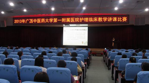 医院副院长桂雄斌在赛前做讲话,桂副院长指出,临床护理教学是护理教育的重要组成部分,是帮助护理实习生将理论与实践相结合,实现角色转变的重要阶段。一附院是全区最大的综合性中医医院,每年均承担区内外多家院校的临床护理教学任务,带教老师是护生接触临床实践的启蒙,综合素质良好的带教老师是临床教学质量的基本保障。教师们要不断学习并掌握带教的艺术和技巧,从而提高临床教学质量。最后,桂院长预祝比赛取得圆满成功!