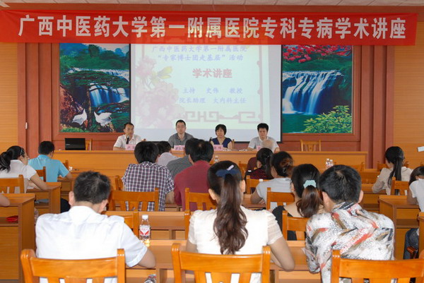 在上林县中医院开展的专科专病学术讲座由一附院和上林县卫生局、上林县中医院联合举办,当地基层医务人员120人参加。肝病科王振常副教授主讲了《慢性肝炎抗病毒治疗的同行共识》,外七科主任罗玉忠副教授主讲了《微创手术在心胸外科的应用》。学术讲座为基层医务人员带来了专科专病规范化诊疗的系统知识和新技术新项目的前沿信息,受到当地同行的热烈欢迎和好评。学术活动拓展和丰富了走基层系列活动的内容。