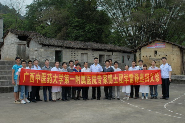 2013年4月20日,由一附院院长助理、大内科主任、肾病风湿病科主任史伟教授带队,一附院专家和博士一行18人到达上林县开展义诊活动,并首次在义诊活动中为基层医务人员举行专科专病学术讲座,受到当地群众和同行的欢迎和好评。这是一附院连续第二年来到上林县开展义诊活动,是“广中医专家博士团走基层”系列活动的第二站,同时也是区直机关团工委组织的“学雷锋﹒关爱留守儿童”志愿服务活动的一个组成部分。上林县县委常委、副县长吴小斌和上林县中医院院长卢坚等当地政府和医疗单位领导出席了活动。