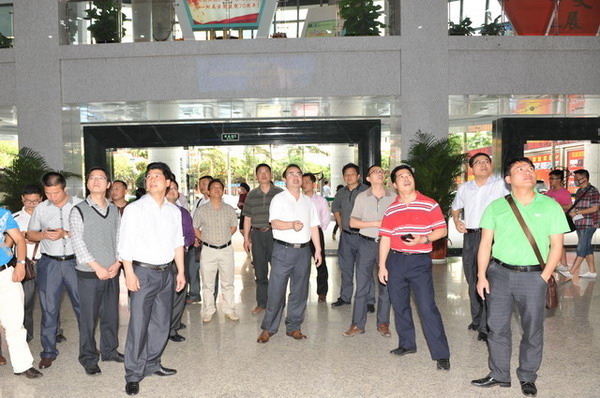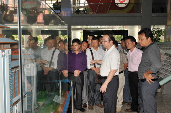 在医院裙楼大堂、医院70周年院史展、中药房、多功能学术厅,黄贵华院长向河池基层医疗机构代表团一行详细地介绍了医院的规模、基本情况、医院发展史、中药饮片以及院内特色制剂。接着,代表团又参观了医院干部病区、消化内镜诊疗部、放射科等医院品牌科室。消化内镜诊疗部是国家卫生部内镜专业技术消化科培训基地,面积达600平方米,拥有日本奥林巴斯260、富士能590系列电子胃镜等先进设备、技术力量雄厚、设施配置人性化。我院放射科拥有多台先进的大型医疗设备,包括世界上最先进的宝石能谱CT(动态500排)、西门子3.0T及GE 1.5T磁共振等,配合该科一批具有发展潜力的中青年学术骨干,使医院的影像研究及诊断水平处于广西领先水平。在参观了医院部分高水平的品牌科室后,代表们对一附院医院文化建设和医疗诊断水平由衷的赞叹。