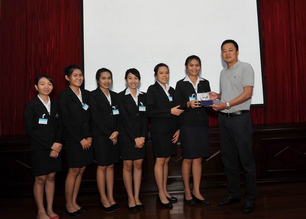 汇报会后,桂雄斌副院长与泰国学生相互赠送纪念礼品。