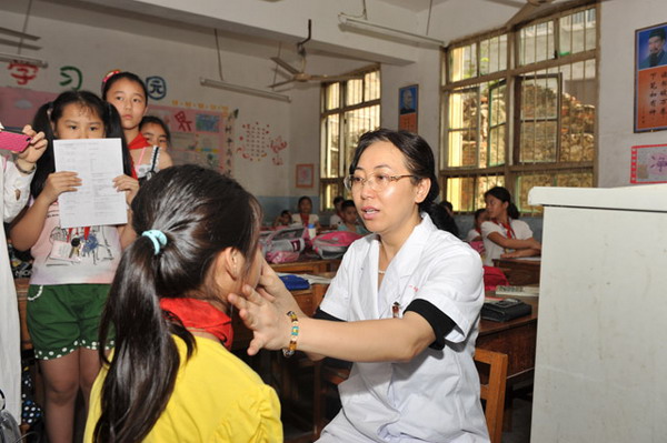 一附院党委副书记、纪委书记、副院长吴西西为小学生检查视力