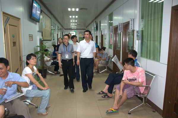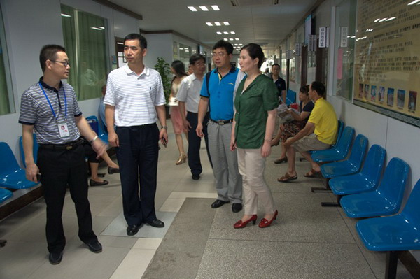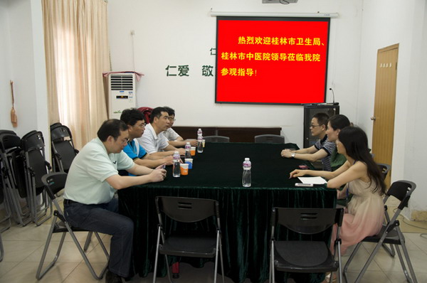 2013年7月12日上午,桂林市卫生局局长邓晓强、桂林市中医院院长杨斌等一行四人到一附院仁爱分院参观交流。一附院仁爱分院党总支书记赵琳、副院长李启荣代表分院热情接待来访客人并陪同参观。