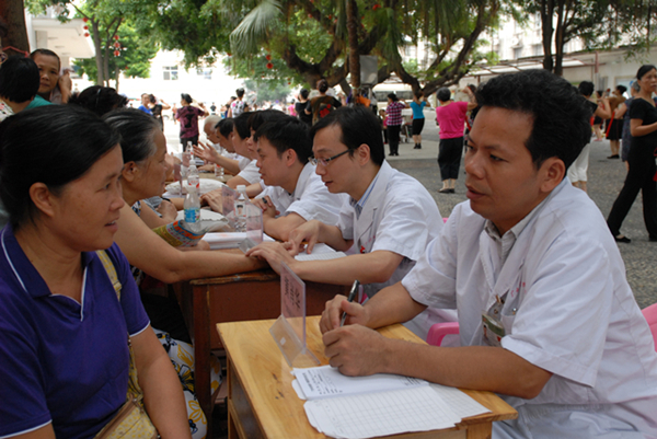 一附院是南宁市铁路局职工医保定点医疗机构,为了进一步增进铁路局职工和家属对一附院医疗技术的了解和信任,方便铁路局职工和家属诊病治病。8月14日上午,由一附院医保办牵头,门诊部协助,组织了脾胃病科、心血管内科、肺病科、内分泌科、外科、骨科、眼科、皮肤科、壮医科等科室共12位专家到南宁市铁路局开展义诊活动。