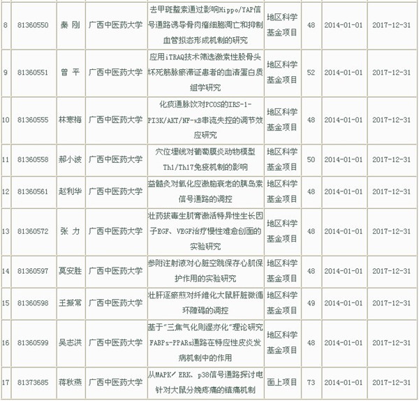 近日,国家自然科学基金委员会公布了2013年申请项目的评审结果,一附院获得项目资助17项,其中,含面上项目1项、青年基金项目2项、地区基金项目14项,受资助经费总计797万元,与去年同期相比(2012年获资助项目13项,资助经费总计635万元),受资助项目数增加了30.76%,受资助经费增加了25.51%。一附院青年基金于2011年实现零的突破后今年又取得了2项,更为可喜的是,面上项目实现了零的突破。此次申报的显著成果标志着一附院科研能力的不断提升,望大家再接再厉,继续保持一附院科技蓬勃发展的良好态势,并希望各项目组负责人认真组织项目实施,争取向国家自然科学基金委员会交一份满意的答卷。
