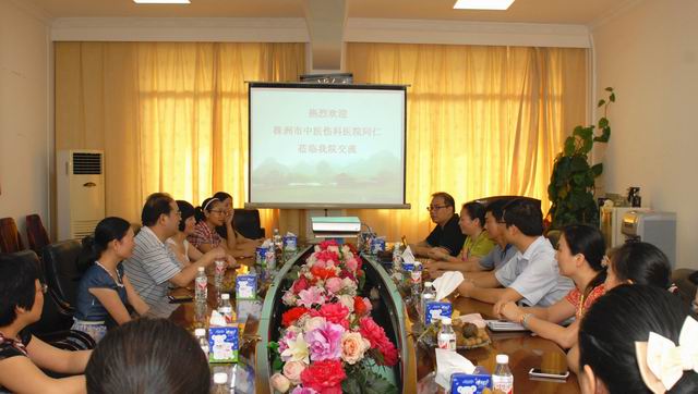 2013年8月22日上午,株洲市中医伤科医院党委书记毛将二带领护理部主任及护士长一行14人到一附院参观交流。一附院副院长周建国和外联部、院办、护理部等部门负责人热情接待来访客人并陪同参观。
