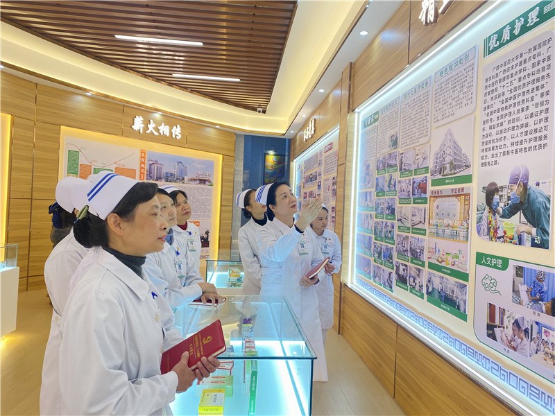 一段段详实的文字,一幅幅生动的画面和一件件珍贵的展品,记录着一附院80周年辉煌的发展历程。从成立初期仅有15张病床的中医小诊所发展到今天拥有三大院区2233张病床、四家社区卫生服务中心,以“龙头”之势引领着广西中医药事业高质量发展的现代化综合性三级甲等中医医院,支部党员深刻感悟前辈师长艰苦奋斗的创业精神和济世苍生的大医情怀。