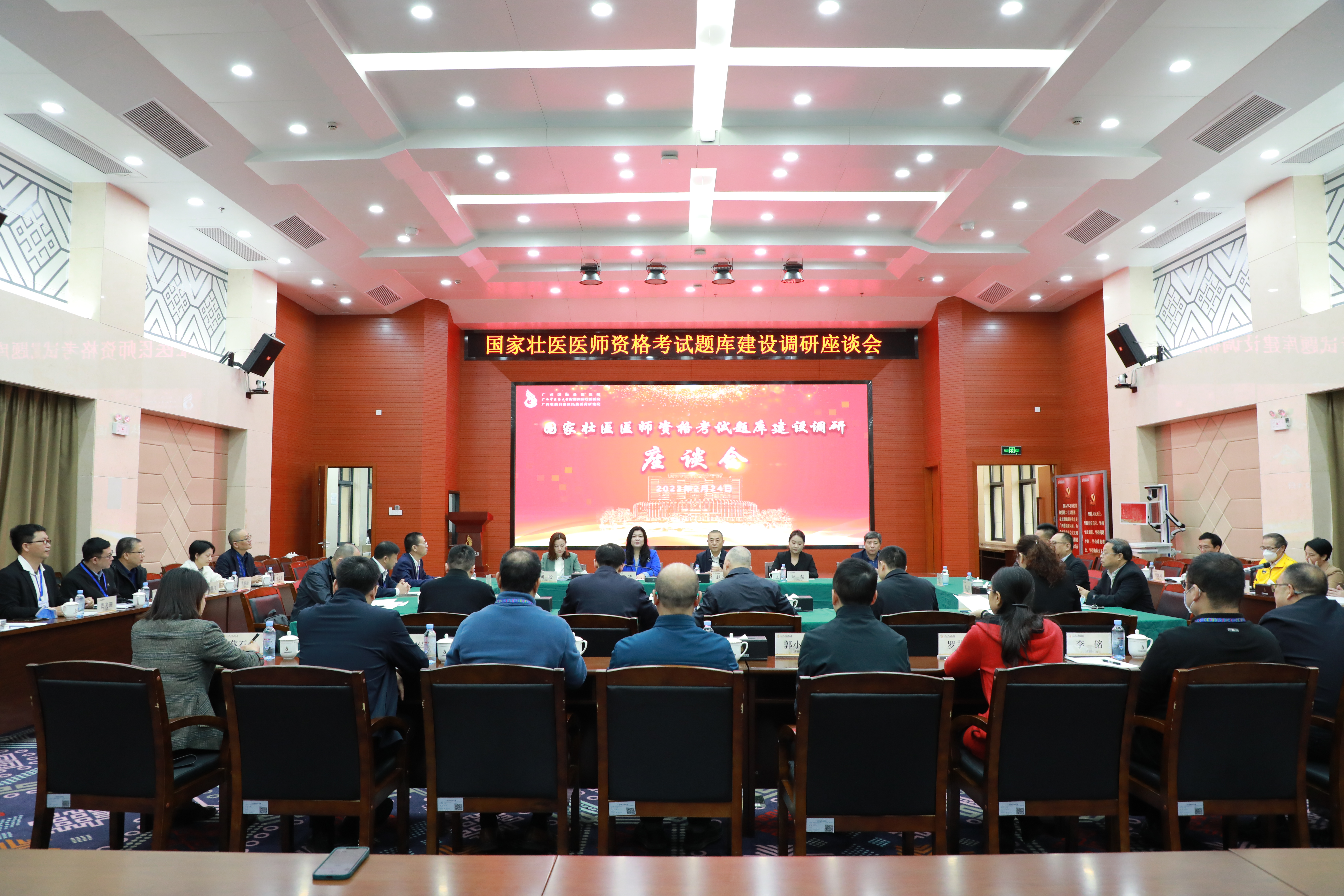座谈会上,黎甲文、自治区卫生健康人才与技术服务中心副主任闭闵、医院领导岳桂华,分别汇报了广西壮医药工作、广西考区壮医医师资格考试工作、壮医医师考试基地建设情况;壮医医师资格考试首席专家、命题组专家分别发言,围绕自身工作经历和壮医人才培养、考试题库建设工作和问题等方面展开探讨交流。