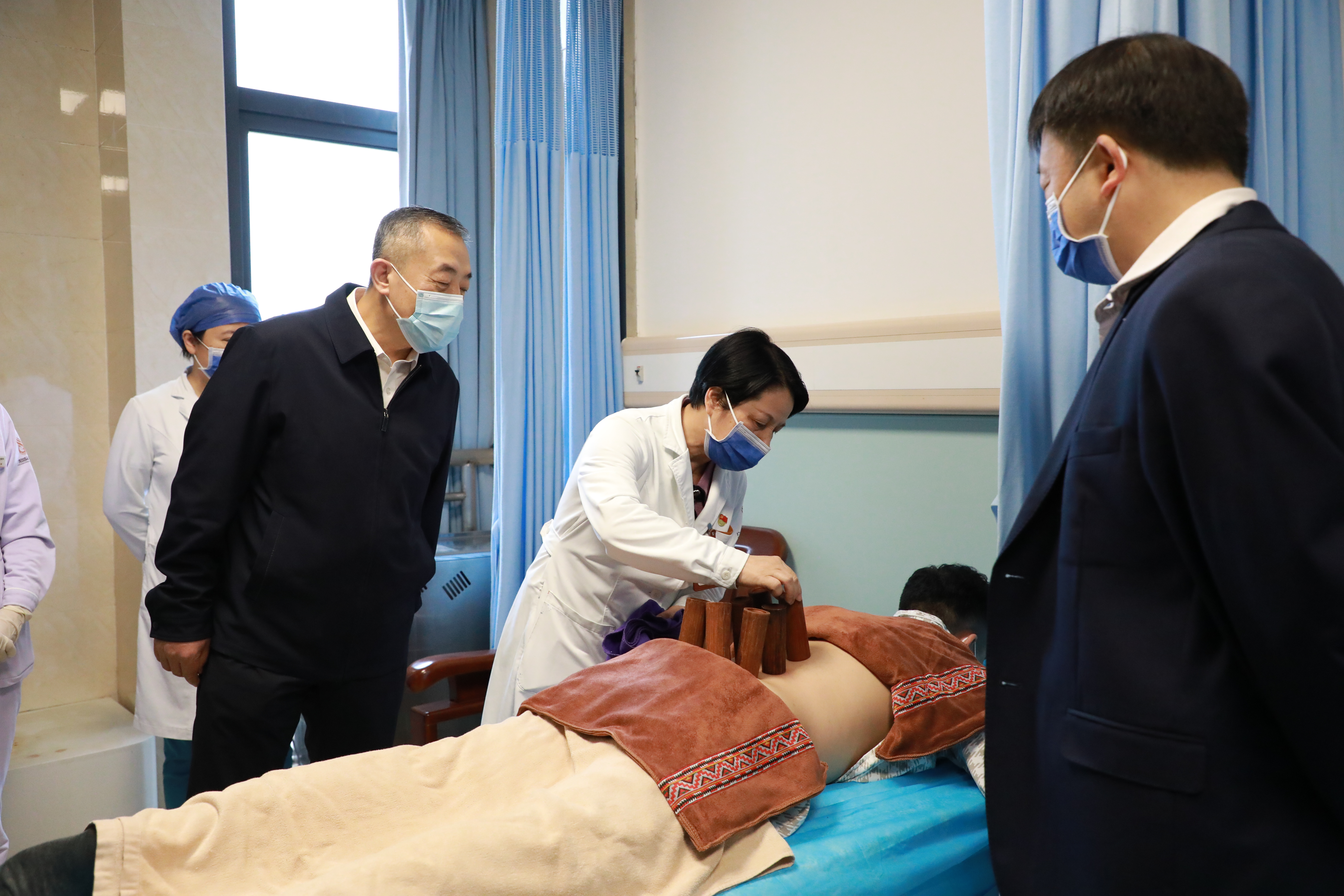 赵文华一行在风湿病科观看壮医药物竹罐疗法展示