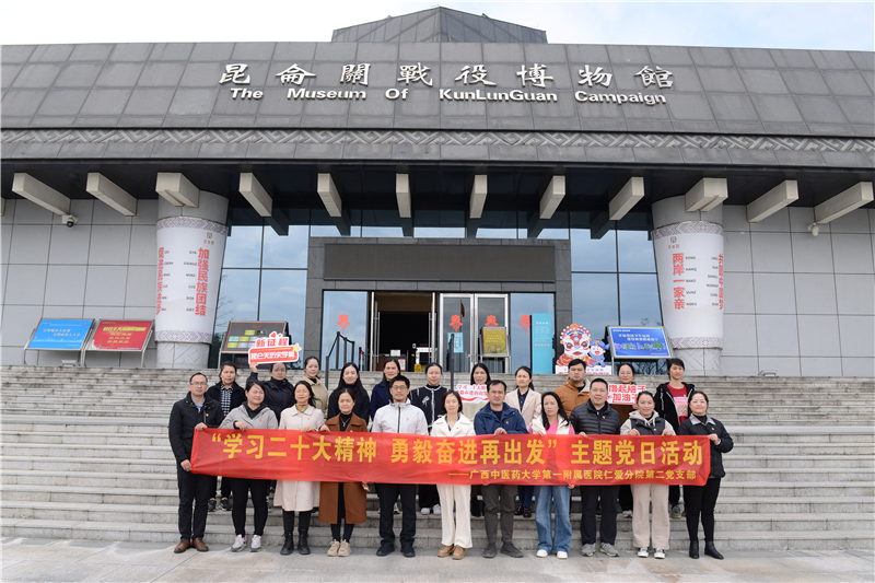 在抗战七十周年纪念标志的雕像前,重温入党誓词,在昆仑关战役博物馆学习先烈英勇顽强抗击日寇悲壮史诗,在纪念碑、烈士墓、战役遗址保护区缅怀抗战先烈。瞻仰一件件鲜活的文物、生动的展板,聆听舍生忘死的英雄故事、触目惊心的战争数据,犹如身临其境的空袭和炮火模拟体验,观摩出生入死的战斗场景演示,将大家带回到那段波澜壮阔的革命岁月,深刻感悟到革命时期的苦难辉煌与浴血荣光,从而更加坚定永远听党话、跟党走的信念和决心。在古关楼前党员集体过政治生日,畅谈入党初心和美好理想。此行,支部书记还结合革命历史,以“学习贯彻二十大,勇毅奋进再出发”为题讲授了一堂生动的主题党课,这已是本支部今年第二次组织“学习二十大”专题党课。