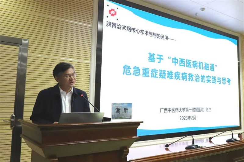 第七批全国老中医药专家学术经验继承工作指导老师、广西岐黄学者、广西名中医、一附院院长谢胜教授授课