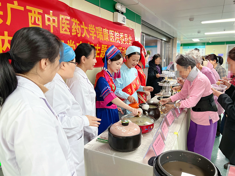 活动现场,同志们不但精心准备了益心通脉五指毛桃骨头汤、补脾健胃猪肚汤、滋阴补血药膳鸡等十多种美味的药膳菜品,还邀请到重症医学科二区的欧阳晓强现场为大家制作“瑞康葛根油茶”,色香味俱全还有养生功效的菜品让患友及家属们赞不绝口。品尝之余,家属刘叔叔对医护人员说道:“感谢党和国家,让我们人民群众的切身利益得到保障。感谢心血管内科一区的医护团队,不仅技术硬,服务还特别用心,把病人交给你们,我们放心了。”在场的医护人员纷纷表示,这就是双向奔赴的医患情,收到这样的感谢,心里特别温暖,最让人动容。