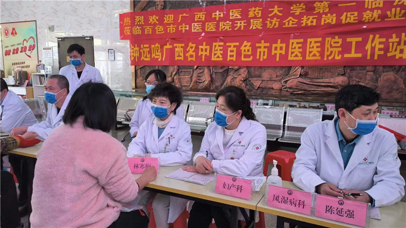 为深入开展名中医学术传承及技术指导,以一附院钟远鸣广西名中医百色市中医医院工作站为依托,充分发挥中医药特色优势及“传帮带”作用。3月5日,钟远鸣名中医专家团队暨外科党总支第五党支部一行11人到百色市中医医院开展义诊、教学查房等系列活动。