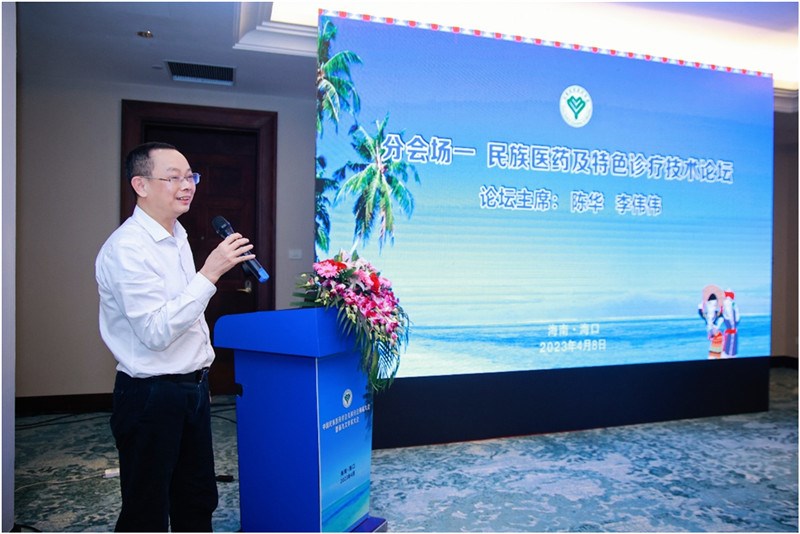 李伟伟受邀作为民族医药及特色诊疗技术论坛主席,同时发表了题为《从三十六荡坎蛤散研发探赜壮医理论之钩玄》的演讲。李伟伟重点分享了壮医“三道两路”“毒虚致病”理论及“解毒为先”“调气为主”“补虚为辅”治法及“主药”“帮药”组方原则。通过对壮医药知识的介绍,展现了广西民族医药的特色和传承创新。演讲受到主持专家、与会领导与学者的肯定,引起线上线下参会者的浓厚兴趣,与会人员热烈讨论,收获颇丰。