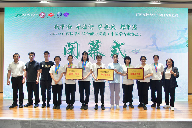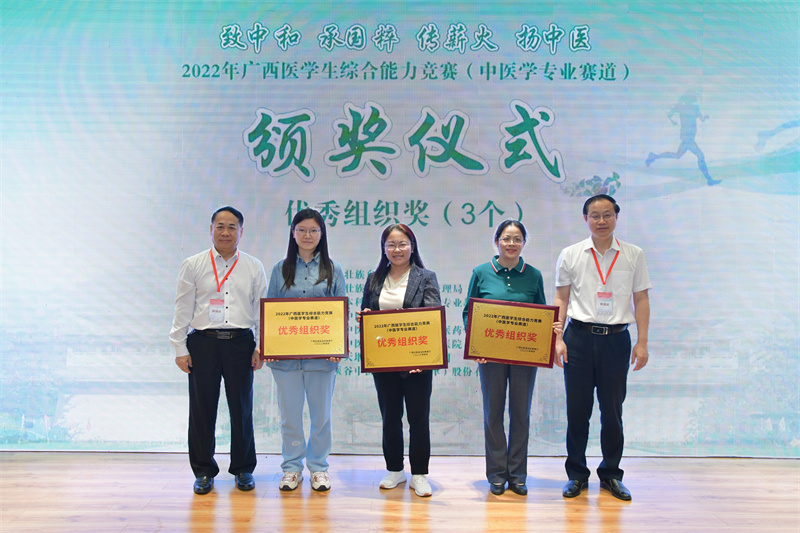 4月15-16日,2022年广西医学生综合能力竞赛(中医学专业赛道)在星空彩票老版本下载明秀校区举行,本次比赛由广西壮族自治区教育厅主办,广西壮族自治区中医药管理局和广西本科高校中医中药类专业教学指导委员会指导,主题为“致中和 承国粹 传薪火 扬中医”,全区来自16个单位的29支队伍同场竞技。经过激烈角逐,星空彩票老版本下载附属瑞康医院中医药大学队获团体一等奖;星空彩票老版本下载附属瑞康医院赛恩斯新医药学院队获团体二等奖;获个人单项一等奖3项,二等奖2项,三等奖4项;瑞康临床医学院获优秀组织奖。