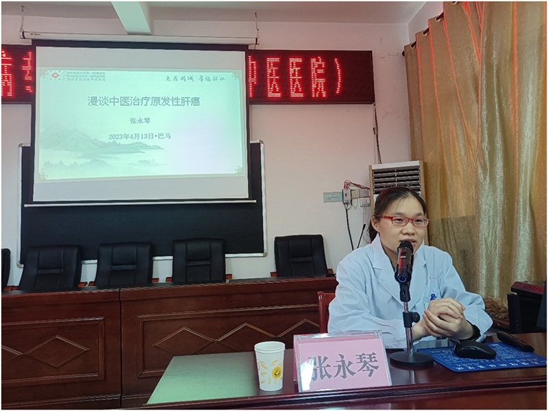 张永琴副主任医师、官志杰副主任医师分别为巴马瑶族自治县民族(中医)医院开展了《漫谈中医治疗原发性肝癌》、《肝动脉灌注化疗(HAIC)在肝细胞癌的应用》的专题讲座。