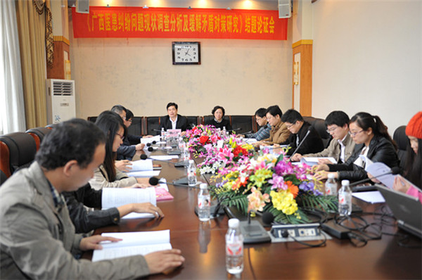 会上,唐乾利副校长首先就《广西医患纠纷问题现状调查分析及缓解矛盾对策研究》调研报告作了详细讲解,并肯定了课题组成员的工作,同时指出,由于时间紧、任务重,调研报告在书写过程中难免存在不足,希望参会人员积极发表各自意见和建议。