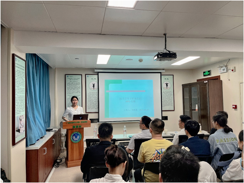 活动开始,杨宇主任医师向大家宣讲举行本次活动的目的与意义。紧接着,何雨思先给我们介绍了膝关节半月板的局部解剖,并按照不同层面的MRI进行正常膝关节半月板的正常判读的讲解,随后列举了一些半月板损伤的MRI诊断。余廷柱给我们介绍了前斜角肌的正常解剖,了解疾病的病因和诊断,还现场演示了前斜角肌综合征的推拿治疗要点。甘向永简单介绍了“富贵包”的定义,主要介绍了目前中西医的治疗方式,突出了中医导引术与运动治疗的重要性。卢昌林给我们讲解了目前国际上较前沿的肝小静脉综合征的诊断指南,详解了与其他疾病鉴别的要点,提到了中西的差异。黄小桃从人们的固有错误认识“吃素不会得脂肪肝”切入,详细介绍了肝的脂代谢过程与脂肪肝的形成、诊断与治疗,生动地演绎了为什么吃素也会得脂肪肝。最后内科第九党支部书记龙富立对活动进行了总结,建议所有同学充分利用每次活动机会,锻炼并展示自己的能力,不断提高自己,大家相互交流,共同进步。研究生及规培生表示此次学术沙龙满载而归。