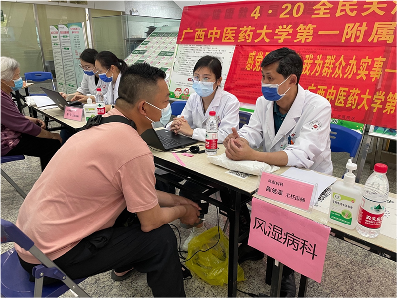 今年是第七个全民关注痛风日,为了向公众普及高尿酸血症/痛风的相关知识,提高公众对高尿酸血症/痛风的防范意识、推动科学治疗痛风的方法。推进高尿酸血症/痛风的中医、中西医结合规范化管理, 4月20日,一附院风湿病科在我院东葛院区门诊大堂举办“回归科学,走出误区”的主题义诊活动,受到广大公众及患者的积极关注及响应,吸引了两百多名患者及家属积极参加本次活动。