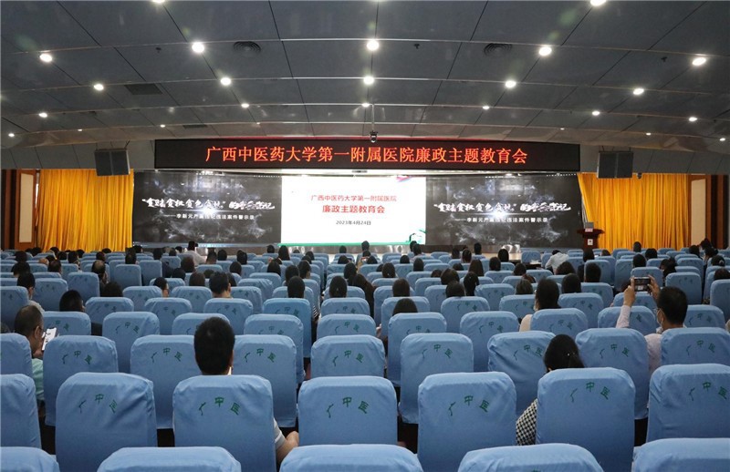 为深入贯彻落实党的二十大精神,进一步推进“清廉广中医”建设,4月24日下午,一附院在住院综合楼五楼多功能厅召开2023年廉政主题教育会,仙葫院区设立了分会场同步直播。一附院领导桂雄斌、谢胜、钟远鸣、周广林、卢健棋、毛德文、黄仲海、张高炼、苏泽凤及全体中层干部、各党(总)支书记、全体支委及重点岗位人员共计400余人参加了会议。会议由纪委书记周广林主持。