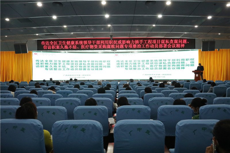 一附院传达全区卫生健康系统领导干部利用职权或影响力插手工程项目谋私贪腐问题、信访积案久拖不结、医疗物资采购腐败问题专项整治工作动员部署会议精神
