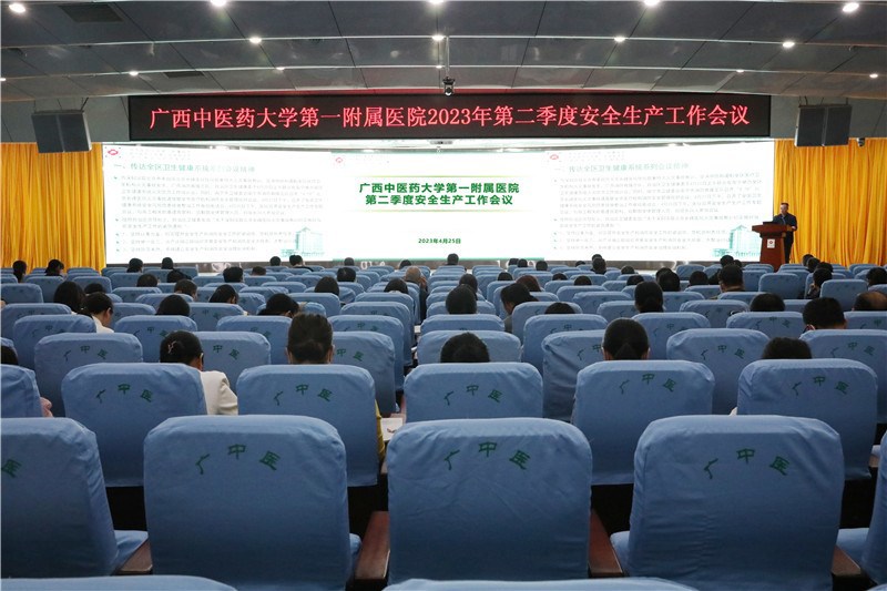 4月25日下午,一附院在住院综合大楼5楼多功能厅召开2023年第二季度安全生产工作会议。一附院领导桂雄斌、谢胜、钟远鸣、周广林、卢健棋、毛德文、黄仲海、苏泽凤及全体中层干部参加了会议。