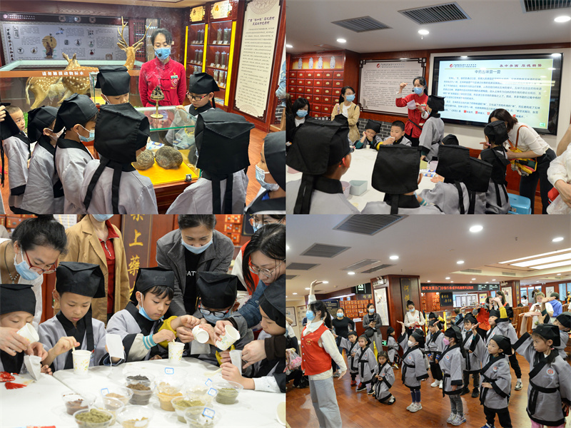 参加此次活动的小学生化身“小郎中”,参观了国医大师馆、院史馆、治未病中心、正骨推拿理疗馆和中医药博物馆,体验中医药文化,感受中医药的文化和特殊魅力。每个科室的讲解员为“小郎中”们介绍了生活中常见的一些中医药知识,让孩子们走进诊疗室近距离观看脐灸、小儿推拿、牵引、艾灸等特色中医疗法。在中医药博物馆里,“小郎中”们不但聆听了梅花鹿皮毛标本、名医塑像、几百种的中药材标本与饮片的详细介绍,还参加多项馆内体验活动,包括品尝养生药茶、学习辨别中药五味、练习八段锦健身功法以及配制适宜的中药香囊等,激发了小朋友们对中药的浓厚兴趣。