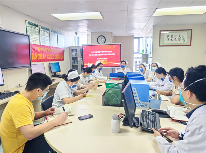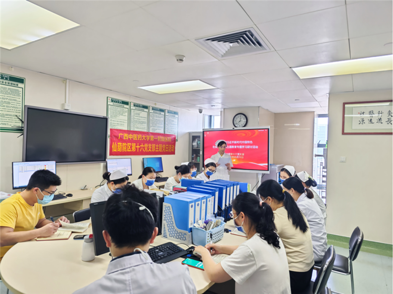 5月19日,一附院仙葫院区党总支第十六党支部在壮医针灸•泌尿外科医生办公室,开展学习贯彻习近平新时代中国特色社会主义思想主题教育系列主题党日活动,支部全体党员、部分职工代表参加。