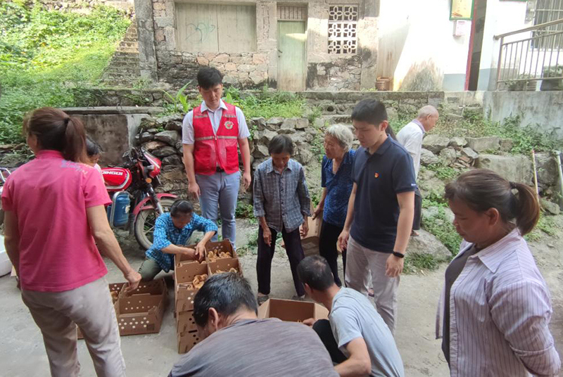 一大早,装着一万羽爱心鸡苗的货车就驶入村委会,数十个运输框也随之平地而放,村民们纷纷提着各式各样的容器围了上来。“我们村干会按组进行划分,都不要挤,大家都有份!”附属瑞康医院派驻的邓承志、吴嘉庆这两个“新老”第一书记在念潭村给村民们装鸡苗的同时,也与村里的村干部们一起维持着秩序。活动现场,养殖技术人员还详细讲解了鸡苗管护知识,强调在管护过程中应注意的事项。