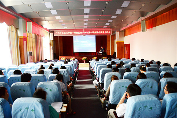 为把握医院医疗业务运行、医院感染管理及疫情监测等各项工作动态,以促进医疗质量持续改进,确保医疗安全。2014年6月26日下午,在医技楼七楼第一会议室召开一附院2014年第一季度医疗质量分析会。此次会议院领导高度重视,黄贵华院长、桂雄斌副院长出席会议并听取工作汇报。各临床和医技科室主任、副主任、护士长、副护士长以及医务部、护理部、药学部等相关职能部门负责人共100多人参加了本次会议。 会议由医务部主任王清坚主持。