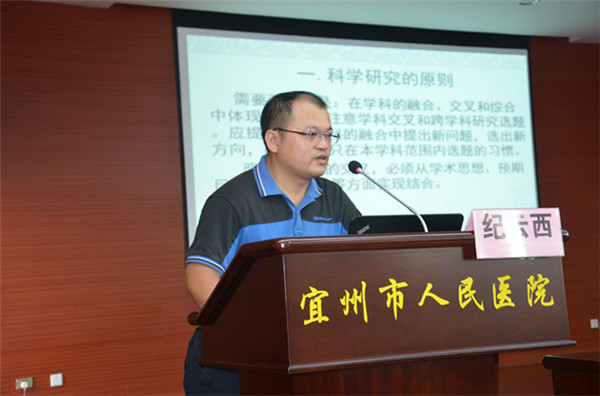 25日晚上,专家们不顾5个多小时的路途疲惫,在宜州市中医院城南新院为该院的各线医师进行了既生动又详实的专题讲座。广西名中医、脑病科专家刘泰教授主讲《昏迷的诊断及治疗》,刘主任从昏迷的疾病定义、病因病机、疾病分型、体格检查、辅助检查、特殊检查、疾病诊断、治疗原则、治疗方法等9个方面,向宜州市中医院的各线医师进行了详细的讲解。随后,一附院科研部副主任、脾胃病科副主任纪云西教授、博士后结合自身经历,从科学研究的原则、科研项目的选题、科研项目的举例等3方面对中医院的医师进行了主题为《科研项目的选题和申报》的专题报告,两场专题讲座均得到了在场全体医务工作者的热烈掌声,在场的医务工作者说,已经很久没有听到如此生动、实用的讲座了。