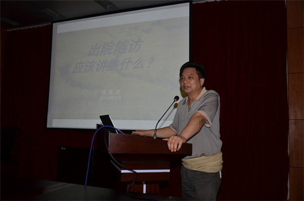 桂雄斌副院长在培训班上就一附院推行随访工作的初衷向各病区的医师进行了说明。桂副院长说,住院病人出院后随访工作的过程,就是提升医务人员服务意识、拉近了医患之间距离、增加医患双方信任的过程,更是促进医师、科室、医院发展的重要途径。桂副院长强调,住院病人出院后随访是医院实施党的群众路线,改进工作作风的重要举措,各病区要明确本次培训的目的,认清随访工作的重要性,认真扎实地把随访工作做细、做实、做好。