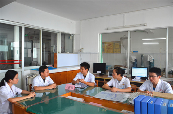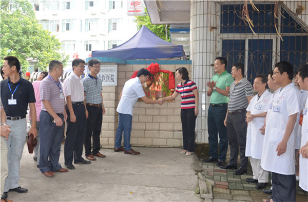 22日上午8点18分,在横县中医医院大门口,举行了简单而不失隆重的技术协作合作医院揭牌仪式。揭牌仪式结束后,一附院推拿科、骨三科、脑病科、针灸科、肝病科、脾胃病科、心胸外科、妇科等科室的专家深入横县中医医院对应科室,为各科室进行专科指导带教查房,对科室重、疑难病症进行了详细的诊断和指导治疗。广西名中医、骨三科主任医师廖小波教授不仅会诊疑难病例,还从骨科常见病的诊疗、常用手术方法的种类、骨折病人术后康复治疗等多方面与科室的医务人员进行座谈。针灸科主任何列涛在指导查房之余,还对一位因臀上皮神经卡压综合症住院的患者实行了小针刀治疗。肝病科副主任王振常教授在查房结束后,还专门抽出时间,为横县中医医院内二科的医务工作者,开展了一堂肝病科常见疾病的小讲课。