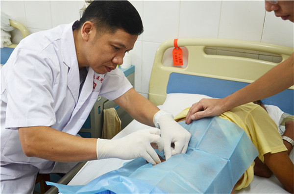 针灸科主任何列涛教授为患者做小针刀治疗