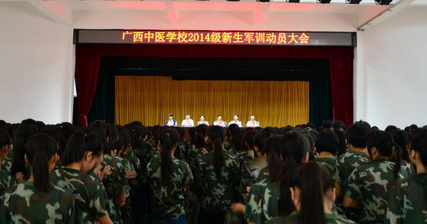 广西中医学校在北湖校区礼堂举行2014级新生军训动员大会