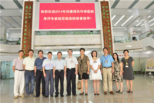 2014年09月10日上午,由区、市文明办、环境保护和卫生行政等部门联合组成的创建绿色环保医院专家组莅临我院评审验收,在一附院黄贵华院长、李敏智书记、周建国副院长及部分科室负责人的陪同下,专家组首先实地踏堪医院环境、宣传栏、污水处理站、饭堂、垃圾处置中转站、病房等,并以听取“绿色环保医院”工作汇报、查阅资料等形式对一附院的创建工作进行了全面、细致的检查。评估组专家一致认为一附院领导高度重视“创绿”工作,措施扎实,实现了医疗安全和人文关怀的和谐统一,创建工作取得了真正实效。
